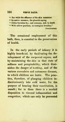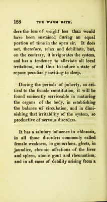 Credit: Practical observations on the medical powers of mineral waters, and of the various modes of bathing : particularly in scrofula, consumption, cutaneous affections, gout, rheumatism, palsy, disorders of the kidnies, indigestion, female diseases, general debility, nervous and liver complaints, &c. &c. : with remarks on exercise and diet, intended for the use of invalids / by Patrick Mackenzie. Source: Wellcome Collection.