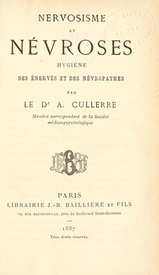 Credit: Nervosisme et nroses : hygie des erv et des nropathes / par A. Cullerre. Source: Wellcome Collection.