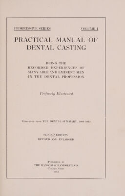 The practical manual of dental casting, being the recorded experiences of many able and eminent men in the dental profession : Profusely illustrated. Reprinted from The Dental Summary, 1909-1913.