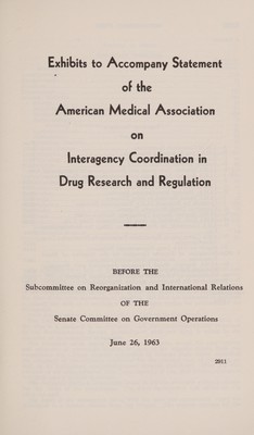 Interagency coordination in drug research and regulation : hearings before the Subcommittee on Reorganization and International Organizations of the Committee on Government Operations, United States Senate, Eighty-eighth Congress, first session : agency coordination study, pursuant to S. Res. 27, 88th Congress, as amended : review of cooperation on drug policies among food and drug administration, national institutes of health, veterans' administration, and other agencies.