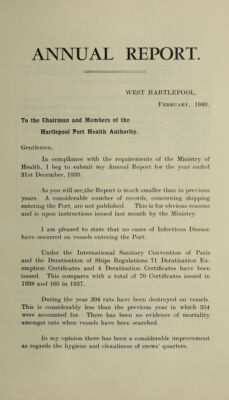 [Report 1939] / Medical Officer of Health, Hartlepool Port Health Authority.