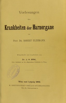 Vorlesungen uber Krankheiten der Harnorgane / von Robert Ultzmann ; mitgetheilt und bearbeitet von J.H. Brik.