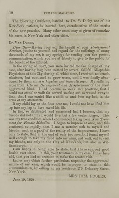 Dr. Van Doren's Institution for Treating the Chronic Diseases of Women, New York.