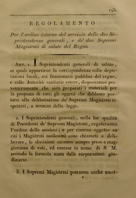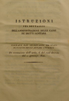 Credit: Regolamenti sanitarii per lo regno delle Due Sicilie sanzionati da Sua Maestà in conseguenza della legge de' 20. ottobre 1819. : S'inseriscono in questo volume la legge, i decreti reali, lo statuto penale, e tutt' altro che è relativo alla riordinazione del servizio sanitario del Regno. Source: Wellcome Collection.