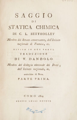 Saggio di statica chimica / di C.L. Berthollet ... traduzione di V. Dandolo, arricchita di note.