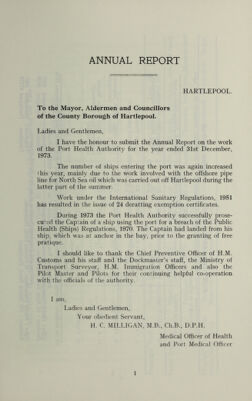 [Report 1973] / Medical Officer of Health, Hartlepool Port Health Authority.