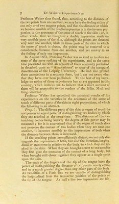 Account of some new experiments on the sensibility of the skin, by Dr. Weber, Professor of Anatomy at Leipzig / by Allen Thomson.