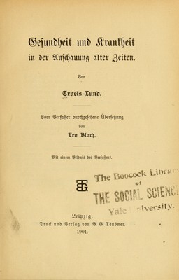 Gesundheit und Krankheit in der Anschauung alter Zeiten / Von Troels-Lund. Vom Verfasser durchgesehene Übersetzung von Leo Bloch. Mit einem Bildnis des Verfassers.