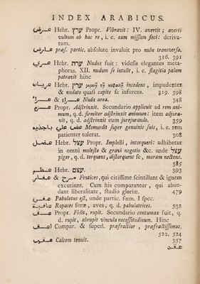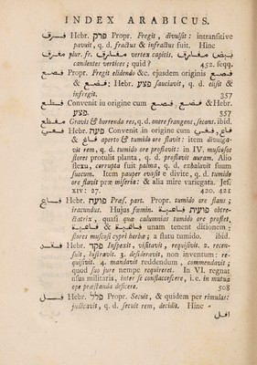 Credit: Thomæ Erpenii Grammatica Arabica cum fabulis Lokmani, etc. Accedunt excerpta anthologiae veterum Arabiae poetarum quæ inscribitur Hamasa abi Temmam, ex mss. Biblioth. Academ. batavæ, edita, conversa et notis illustrata ab Alberto Schultens / Praefatio imaginariam linguam, scriptionem, et lineam sanctam Judaeorum confutat. Source: Wellcome Collection.