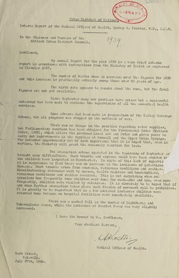 Credit: [Report 1939] / Medical Officer of Health, Matlock U.D.C. Source: Wellcome Collection.