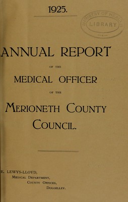 Credit: [Report 1925] / Medical Officer of Health, Merioneth County Council. Source: Wellcome Collection.