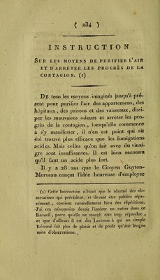 Observations sur la fièvre des prisons : sur les moyens de la prévenir en arrêtant les progrès de la contagion, à l'aide des fumigations de gaz nitrique, et su l'utilité de ces fumigations pour la destruction des odeurs, et des miasmes contagieux, etc. / traduites librement de l'anglais, du Dr. James Carmichael Smith ... ; suivies d'un extrait des Observations du Dr. James Currie ... sur les bons effets des aspersions d'eau froide dans fièvres ; et terminées par des observations additionnelles sur les fumigations de gaz nitrique [de Smith] en réponse aux objections faites contre ces fumigations, par le Cit. Guyton-Morveau, dans son Traité des moyens de désinfecter l'air ; avec une instruction sur les moyens d'en faire usage, par Louis Odier.