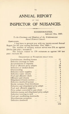 Credit: [Report 1906] / Medical Officer of Health, Kidderminster R.D.C. Source: Wellcome Collection.