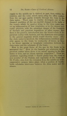 Credit: Three cases of cerebral abscess consequent upon suppurative disease of the middle ear, with remarks / by Thomas Barr. Source: Wellcome Collection.