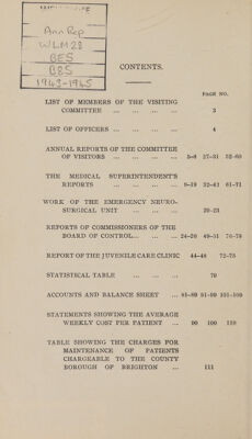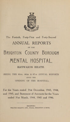 Annual report of the Brighton County Borough Mental Hospital : 1943-1945 (& statement of accounts March 1944, 1945 & 1946)