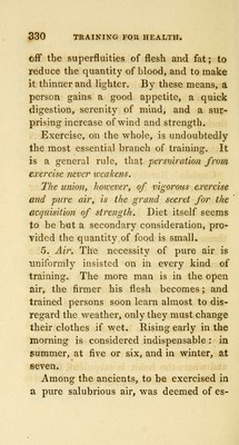 Credit: Sure methods of improving health and prolonging life, or, a treatise on the art of (deo volente) living long and comfortably, by regulating the diet and regimen; embracing all the most approved principles of health & longevity, and exhibiting particularly the remarkable power of proper food, wine, air, exercise, sleep, &c; in the cure of obstinate chronic diseases, as well as in promoting health and long life; to which are added, the art of training for health , rules for reducing corpulence, and maxims of health for the bilious and nervous, the consumptive, men of letters, and people of fashion; illustrated by cases / by Thomas J. Graham. Source: Wellcome Collection.