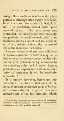 Credit: Sure methods of improving health and prolonging life, or, a treatise on the art of (deo volente) living long and comfortably, by regulating the diet and regimen; embracing all the most approved principles of health & longevity, and exhibiting particularly the remarkable power of proper food, wine, air, exercise, sleep, &c; in the cure of obstinate chronic diseases, as well as in promoting health and long life; to which are added, the art of training for health , rules for reducing corpulence, and maxims of health for the bilious and nervous, the consumptive, men of letters, and people of fashion; illustrated by cases / by Thomas J. Graham. Source: Wellcome Collection.