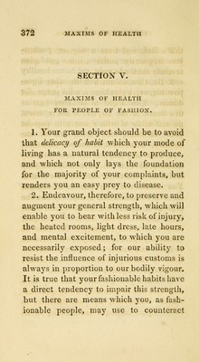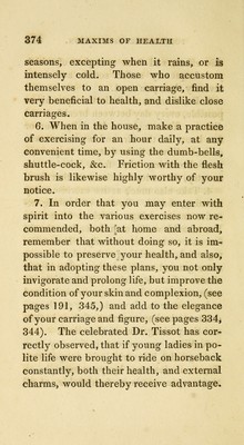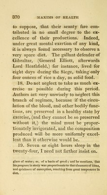 Credit: Sure methods of improving health and prolonging life, or, a treatise on the art of (deo volente) living long and comfortably, by regulating the diet and regimen; embracing all the most approved principles of health & longevity, and exhibiting particularly the remarkable power of proper food, wine, air, exercise, sleep, &c; in the cure of obstinate chronic diseases, as well as in promoting health and long life; to which are added, the art of training for health , rules for reducing corpulence, and maxims of health for the bilious and nervous, the consumptive, men of letters, and people of fashion; illustrated by cases / by Thomas J. Graham. Source: Wellcome Collection.