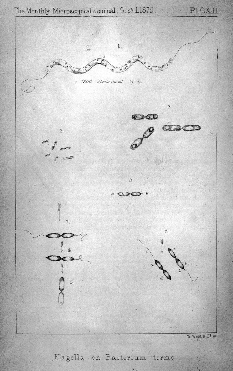 M0016980: Illustration of flagella in bacterium termo. Public Domain Mark. Source: Wellcome Collection.