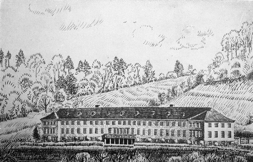 Credit: M0013340: Drawing of the exterior of the Institut fur experimentelle Therapie. Source: Wellcome Collection.