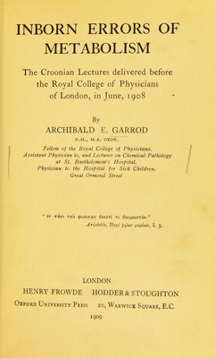 Credit: Inborn errors of metabolism / by Archibald E. Garrod. Source: Wellcome Collection.