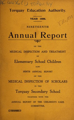 Credit: [Report 1926] / School Medical Officer of Health, Torquay. Source: Wellcome Collection.
