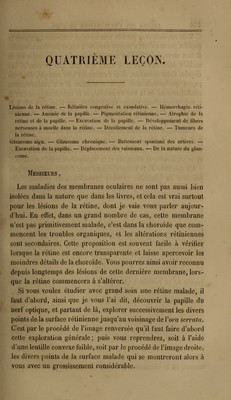 Leçons sur l'exploration de l'oeil : et en particulier sur les applications de l'ophthalmoscope au diagnostic des maladies des yeux / par Follin ; rédigées et publiées par Louis Thomas.