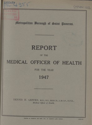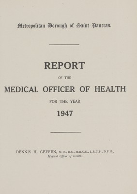 [Report of the Medical Officer of Health for St. Pancras, Metropolitan Borough].