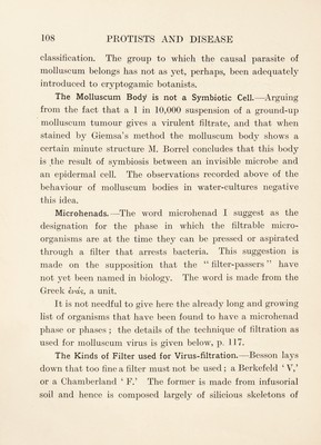 Protists and disease : vegetable protists: algae and fungi, including Chytridiineae, various Plassomyxinae, the causes of molluscum contagiosum, smallpox, syphilis, cancer, and hydrophobia together with the Mycetozoa and allied groups / by J. Jackson Clarke.