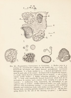 Credit: Protists and disease : vegetable protists: algae and fungi, including Chytridiineae, various Plassomyxinae, the causes of molluscum contagiosum, smallpox, syphilis, cancer, and hydrophobia together with the Mycetozoa and allied groups / by J. Jackson Clarke. Source: Wellcome Collection.