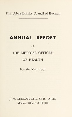 Credit: [Report 1956] / Medical Officer of Health, Hexham U.D.C. Source: Wellcome Collection.