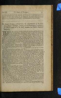 ![34 But, proceed you but on with this firft Degree of Fire only, and that little and little, until the whole water be turned into an afliy Colour’d earth; When this ts V done we will encreafe the Fire by little and little, one Degree more, which willleifurely turn the adiy Colour into a Black one. ' A. I tyill ufe my utmofi diligence and objervancy. B. Do you fee now that lleeke and (hining Black- nefs like the Head of the Crow, covered over with abundance of black and very.' fmall Feathers : And upon this .Account^ the Philofophers have called this thus appearing Colow, rheCrorv/head. To thrs black Crows head,^ admini'tfer the third Degree of Fire, which win tfanfmute this’ blatk head- ahto Various, moft delicate Colours , fiiining like o and D : Then continue on this degree of Fire, that all the faid un- Bable Colours may vanifl^ and may prefeijt to’yicw the white Colour. • After Whitenefs, folloi^s Yellow- nefs, which at la^ will be covered ovef v^th the conftant and permanent l^ed.nTs : Which appeatiilg; the fourth Degree of Fire is to be adminiftred, that that Rednefe may be more and more exalted, and waxing Redder may attain unto its due Filthy and •Conftancy s the which,by way of fimilitude, the Fhi- lofophers call, Salamander and is the.end of our whole Work. r, , A. ,r Jlsoald never have fo, much as dredrnty that fo hlack, a B.ody ,coiild in fo Poort ^Jpace of time hdve been tranfmuted into a mojl ifhitenefs, and that this fame Whitenefs could, by an admirable pajftng through all Colours, pafs into amoji ‘delicate Kednefs^ bkt I pray, when this Matter hath obtained this Kednefs, is it to be accompted f, as an 'Vniverfal Medicine f B. Yes,'. Verily, becaufe.all the curable Difeafes of Men, may (by that fame Matter) be refiored tofor- rher Health y and thatfafer, better and perfedlier than can be done with any Herbs, qr any other known Me¬ dicaments. I except that Medicament, which is ex- traded out of this, and concentrated into a much nobler Nature. But, as concerning the Tranfmuta- tion of Metals, it yields not any Profit,afore it be made fixt and conftant in the Fires to the effeding of - which^there is required a fufficiently great fpace of time. A. As far as I can underjiand, there may he a yet better and proptabler Medicament prepared, than this is. B. Yes, Verily, that there may, a much .better and miore ufeful, becaufe. that with this, there arc as yet admixt many unprofitable Feces, which ought to be feparated therefrom: And the Cafe is far otherwife in the perfeding of this Work out of this Mineral, then in that which is done with Gold, for this is all over defiled with many impurities: For every one muft needs think, that there are abundance of Feces that are to be] feparated from that Mineral, and by how much the more impurities are feparated, fo much the more efficacious muft the Medicament it felf of neceftity be. Now in this preferit Degree and State it is brought unto by us, it would be fufficient for all kind of Difeafes s wbiefi if we would yet have • to be far more efficacious and ftronger, it would be expedient, that we feparate yet the more unprofitable and ufelefs Feces,and concentrate the more pure Eflence into a more narrow Room and lefTcr Body. For ’tis the Soul only orQuinteftence of things, that heals Difeafes. 1 he ffielis or husks bring no Profit at all, and this the Husbandmen well know ', for they fepa- rate ihe Husks and chaff from the Corn, afore they •bake Bread. The Medicinal Virtues of Herbs and . Minerals are but of a ftr.all weight, afore they are . fited from tiie‘Bonds and Fetters of their Bodies; But now, after that they are feparated from their Bo¬ dies, they can perform incredible effeds even in a moft fmall quantity, and fuch as the great weight of that Body, whence they are extraded, will never efted. Look but on a living Man that is in good Health, with how ready and nimble a Motion can he ftir his Limbs and what ftrength he can put forth : But as fuon as ever the Soul fliall have feparated it fclf from the Body, how i.nfenlible and immoveable the Body lies, and not ferviceable for any life > It is therefore a certain and undoubted Truth, that the Life of all things wanleth weight, and this ftiall be more clearly, and more ^evidently demonfirated by the Concentration ofothw iftiiverfarl Medicament. For that which one Ounce, now, does, of this thus prepared Medicament; half an Ounce, when concentrated, will perform the fam,e : .And that which half an Ounce of this Medi- carnefit once concentred will effed - one quarter part oT an Ounce, or a Dram of the fame twite concentra¬ ted’, will effed the fame. And according to this com¬ pute, may you proceed on farther. For fey how much the pftner the prepared Medicament is concentrated, fo fnucli the morC Feces are feparated therefrom: And by hoW much narrowlier the Virtues are contraded*, fo rriifch the greater effeds do' they produce. And thus there needs not in'a manner any weight in Medi¬ cinal ufe. That which ten Grains of an unconcentrated -'Medicament is Wofit'foaccomplifh, you will effed the fame With one Gtain of the Medicine, when concentred, to be put either in Afc or Wine for fotfie hours, if need be,’or .elfc held in the Mouth. For foe it will nolefs difplay its oCcuIt Virtues and Powers, than if the P6wderof the not concentrated Medicaincnt had been othetwife dtunk dowfi. Befidcs too^ fuch a Medica¬ ment may be a long time iifed without lofing of its Virtues, and that not only inwardly, but outwardly alfo in all Wounds, Ulcers, and fuch like external affeds. For all new Wounds, as alfo old Ulcers whatfoever they be, are happily cured by the laying on of thofe Medicaments, if the fame Medicines be likeWife ufed inwardly,. Nor needs there here many Employers, Cataplafmes, and Ointments : Concerning which thing, fee more in the Fifth Bart of my Fhar~ macopaa Spagyrica, where the ufe of this Medicament is treated of. Read alfo thofe things, which that m