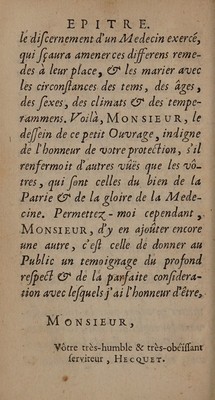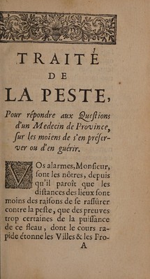Traité de la peste, où en répondant aux questions d'un medecin de province sur les moïens de s'en préserver ou d'en guérir, on fait voir le danger des barraques et des infirmeries forcées. Avec un problème sur la peste / Par un medecin de la Faculté de Paris [i.e. P. Hecquet].