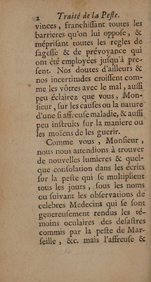 Credit: Traité de la peste, où en répondant aux questions d'un medecin de province sur les moïens de s'en préserver ou d'en guérir, on fait voir le danger des barraques et des infirmeries forcées. Avec un problème sur la peste / Par un medecin de la Faculté de Paris [i.e. P. Hecquet]. Source: Wellcome Collection.