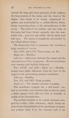 Second series of observations on the pathology of the ear. Based on one hundred and twenty dissections of that organ / [Joseph Toynbee].