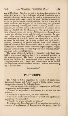 A vindication of the University of Edinburgh (as a School of Medicine,) from the aspersions of "a member of the University of Oxford". With remarks on medical reform / [Lawson Whalley].