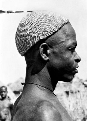 Credit: M0012546: Young girl wearing brass spiral anklets and holding an umbrella. Ibo, Nigeria / M0012547: Man wearing a chain mail head-dress, Ghana. Source: Wellcome Collection.