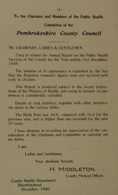 Credit: [Report 1939] / Medical Officer of Health, Pembrokeshire County Council. Source: Wellcome Collection.