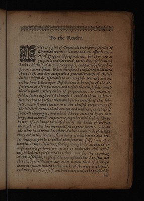 The art of distillation, or a treatise of the choicest spagyricall preparations performed by way of distillation ... together with the description of ... furnaces and vessels also, a discourse of divers spagyrical experiments ... and of the anatomy of gold and silver / [John French].