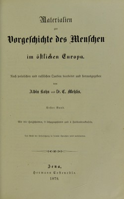 Materialien zur Vorgeschichte des Menschen im östlichen Europa : nach polnischen und russischen Duellen / bearbeitet und herausgegeben von Albin Kohn und C. Mehlis.