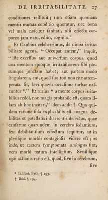 Credit: Specimen inaugurale, de causis irritabilitatem fibrarum motricium augentibus ... / Eruditorum examini subjicit Gulielmus Woodville, Anglo-Britannus. Source: Wellcome Collection.