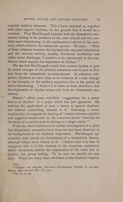 Motor, visual and applied rhythms : an experimental study and a revised explanation / by James Burt Miner.