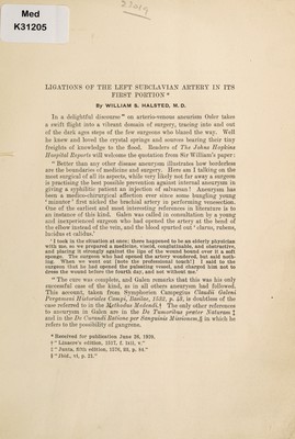 Ligations of the left subclavian artery in its first portion / by William S. Halsted.