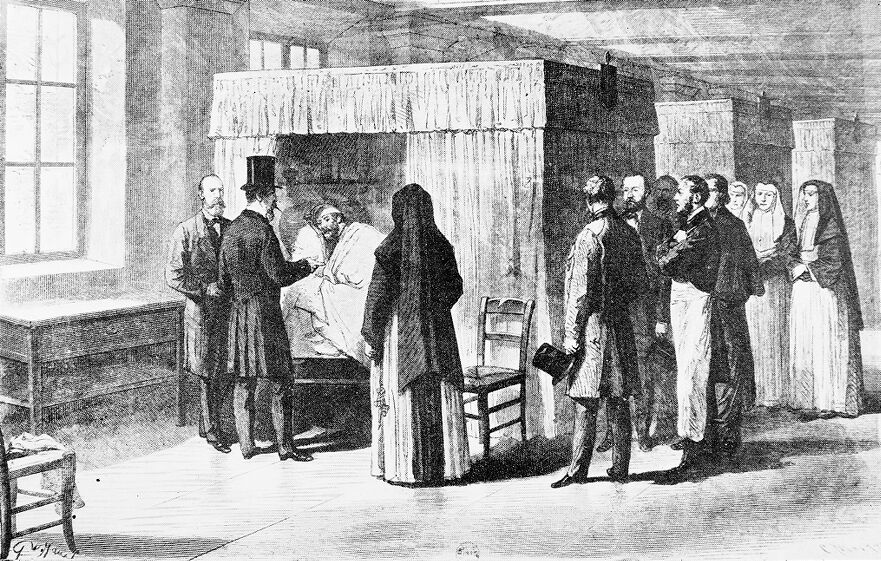 Credit: M0013347: Napoloen III visiting the Hotel-Dieu, Paris, in 1865. Source: Wellcome Collection.