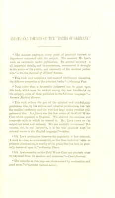 Practical observations on mineral waters and baths; with notices of some continental climates, and a reprint (the third) of the Cold-water cure / by Edwin Lee.