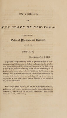 (Circular) of the College of Physicians and Surgeons [of the] University of the State of New York.