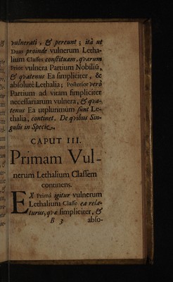 Credit: Rationale vulnerum lethalium judicium, : in quo de vulnerum lethalium naturâ, & causis; ... agitur, / authore Gottfried Welsch. Source: Wellcome Collection.