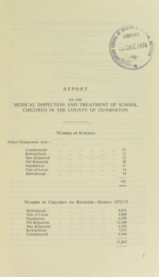 [Report 1972-1973] / School Medical Service, Dunbarton County Council.