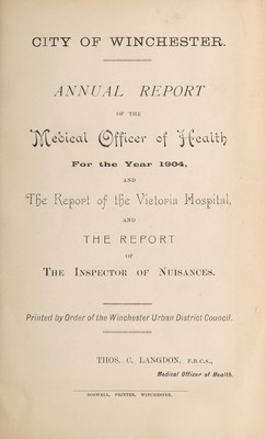 [Report 1904] / Medical Officer of Health, Winchester U.D.C. / City.