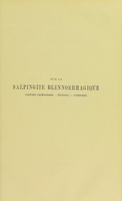 Sur la salpingite blennorrhagique : anatomie pathologique, etiologie, pathogenie / par H. Thibault.